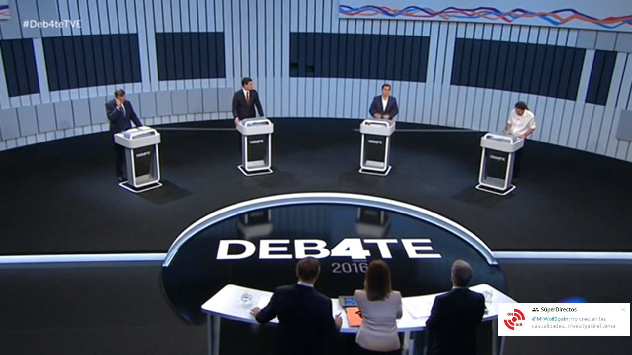 También se celebró en 2015 con Campo Vidal el cara a cara. En 2016 sólo se celebró el debate de los cuatro principales candidatos porque definitivamente el bipartidismo se había roto.