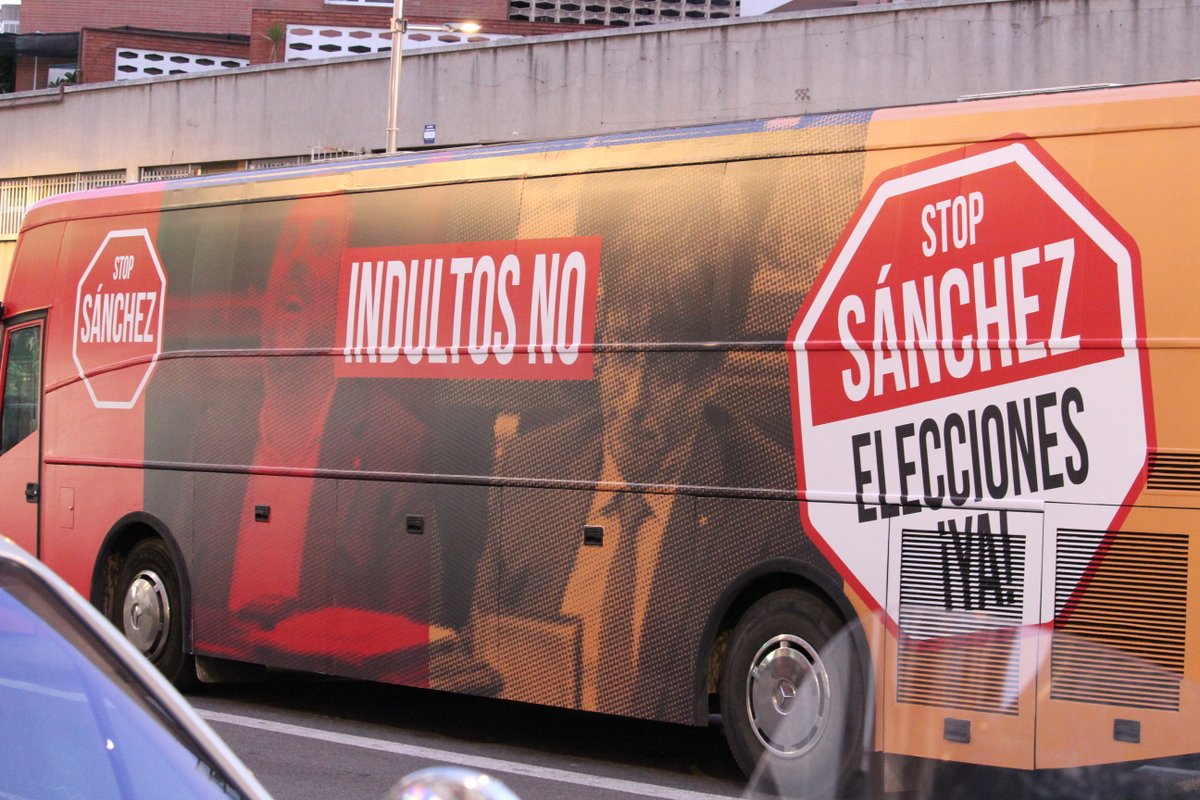 El autobús de la plataforma visita Valencia tras recorrer Barcelona y Madrid donde, asimismo, se organizó una concentración para reivindicar la convocatoria de elecciones y decir ‘no a los indultos de Sánchez’ en pleno centro de la capital el pasado 24 de noviembre.